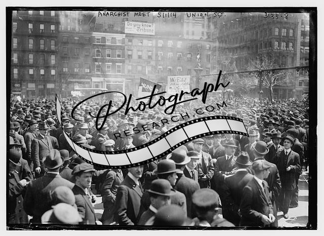 Anarchist meeting,May 1,1914,Union Square,Hunger sign,crowd gathered,New York