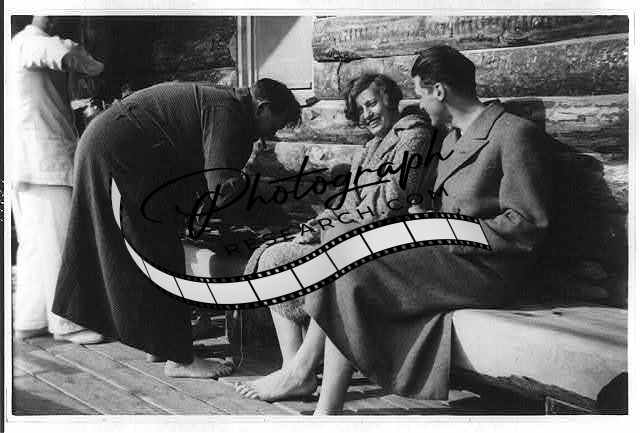 Göring with Swedish guests in bathrobes on porch at Göring's home, Carinhall, E. Prussia