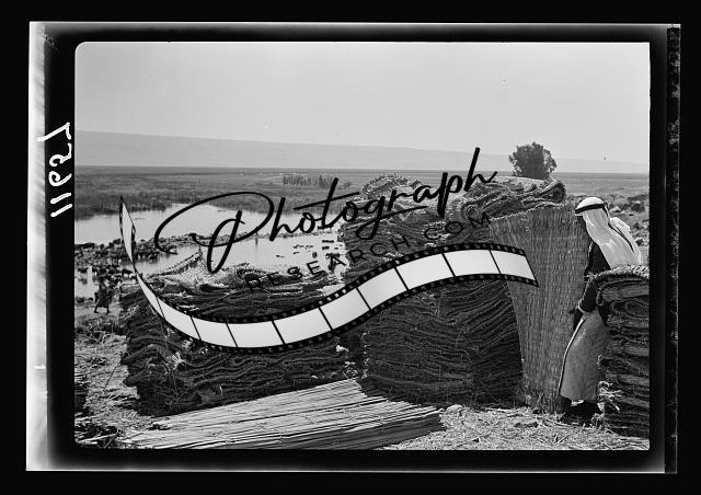 Title: Galilee trip. Huleh District (Lake Merom). Mat weaving from reeds at Mallaha, closer, showing loom