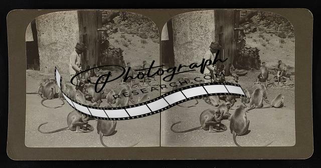 Boy feeding monkeys,Benares,India