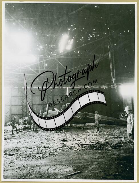 Damaged enemy plane,hangar,Diégo Suarez drome,soldier,Fleet Air Arm,bombing,1941
