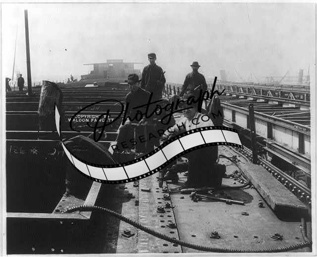 Man,pneumatic tools,railroad bridge construction,c1904