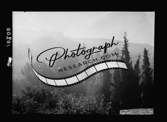 Garden of Gethsemane seen through fog from across the valley,Jerusalem,Israel,1