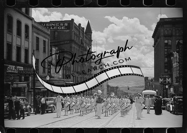 High school band parade,Montana Street,Butte,Montana,MT,Arthur Rothstein,FSA,1