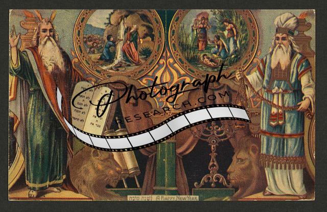 Happy new year,Moses, Aaron,Ten Commandment tablet,1900