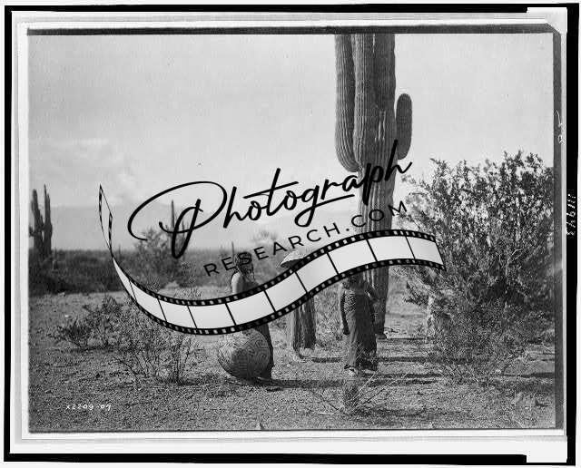 Gathering hasen,Qahatika,woman using pole to harvest cactus fruit,Arizona,AZ