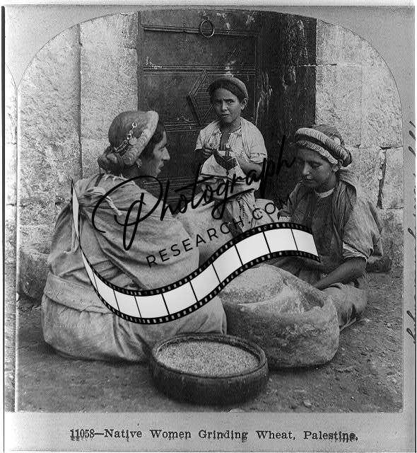 Native Women grinding Wheat,Palestine,c1900,Arabs,Women Employment