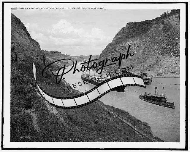 Culebra Cut,looking north between two highest hills,Panama Canal,Gaillard,1910