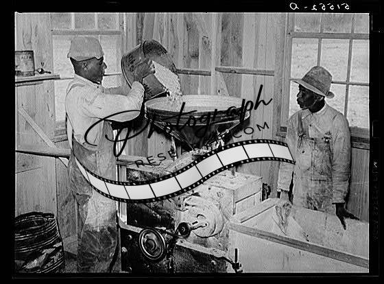Title: Boy pouring his corn for grinding into meal at cooperative grist mill. Gee's Bend, Alabama