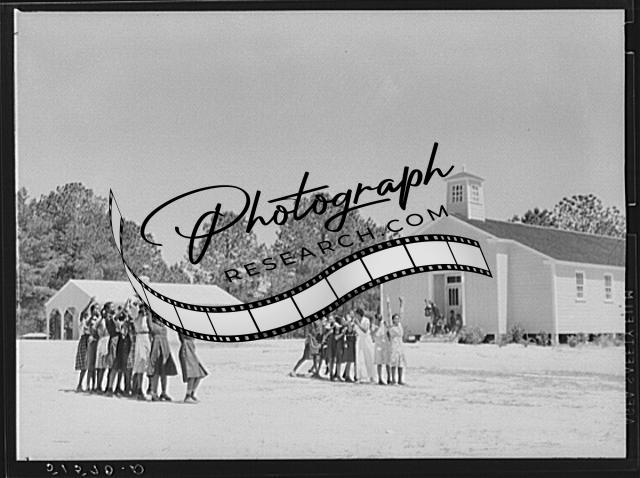 Title: Florence Wright (in white slacks), recreation supervisor, directing games during outdoor period. Gee's Bend, Alabama