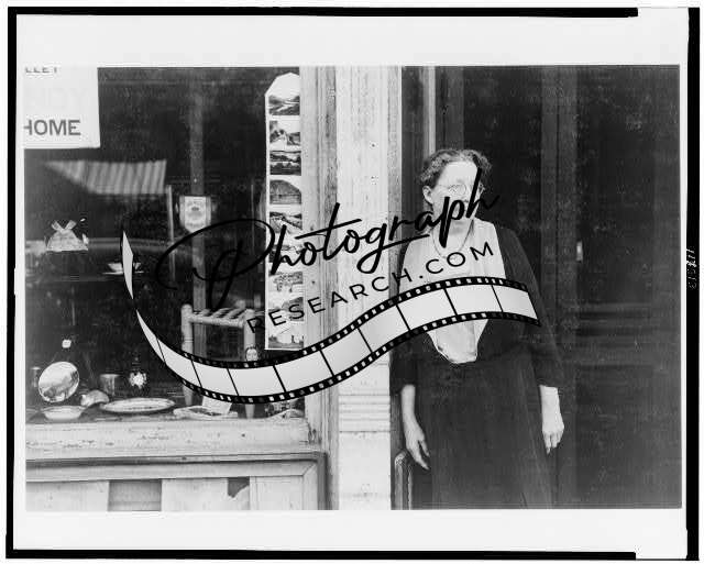 Fashionably dressed woman,store window,Harper's Ferry,West Virginia,WV,c1942