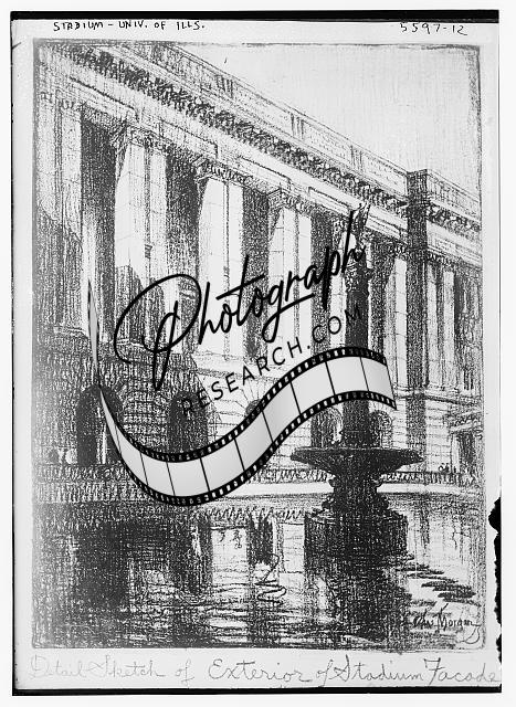 University,Illinois,stadium plan,sketches,exterior,Holabird,Roche,Architects