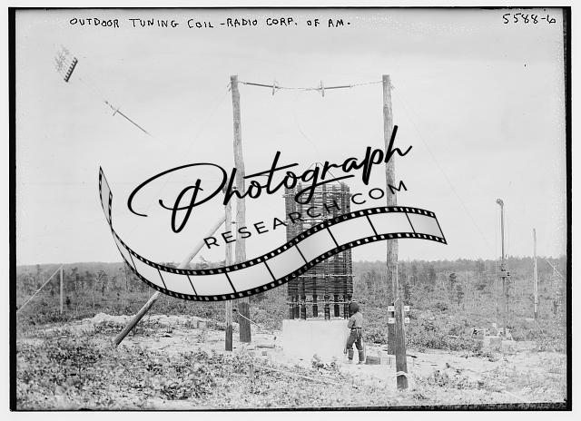 Outdoor tuning coil,Radio Corporation,America,communication devices,poles,wires