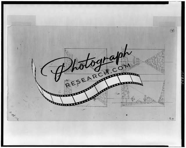One-point perspective sketches,structure,trees,vanishing point,C Bulfinch,1790