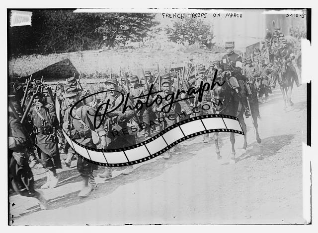 French troops on march,Soldiers,Horse,Military,Bain News Service