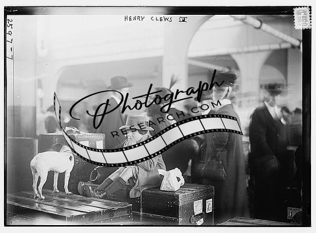 Henry Clews III,son of artist Henry Clews,Jr.,seated on suitcases,dog