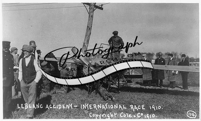 LeBlanc Accident,International Race,1910,Airplane,Crashed,Telephone Pole,Plane