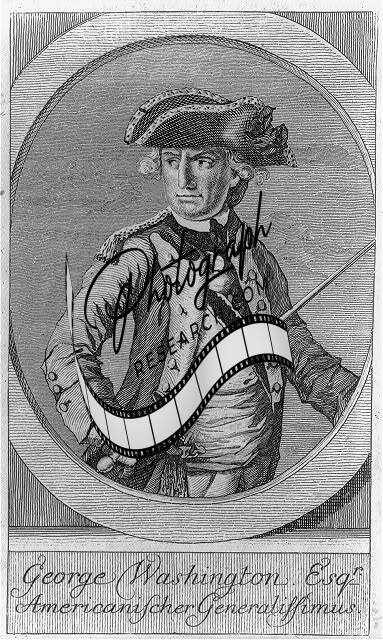 Summary: Print shows George Washington, half-length portrait, facing right, wearing military uniform; framed medallion on pedestal with nameplate.