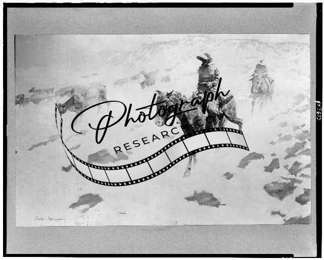 Drifting before storm,cattle herding,snow,cowboys,horseback,F Remington,c1904