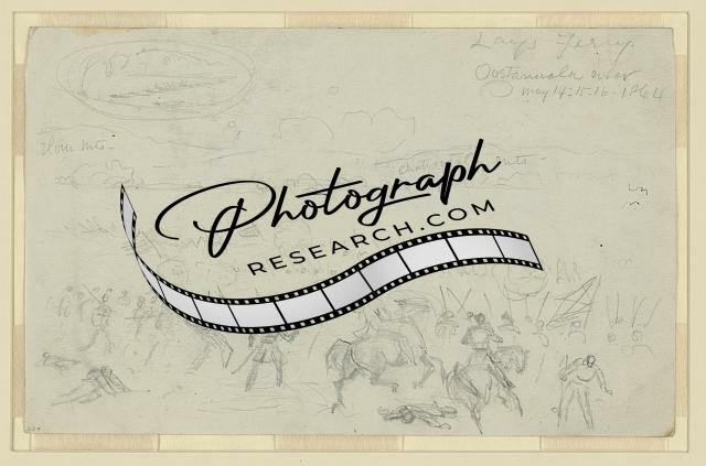Drawing on green paper title: May 12th fight 1864. The Brown House. Spotsvylvania Ct.Ho.