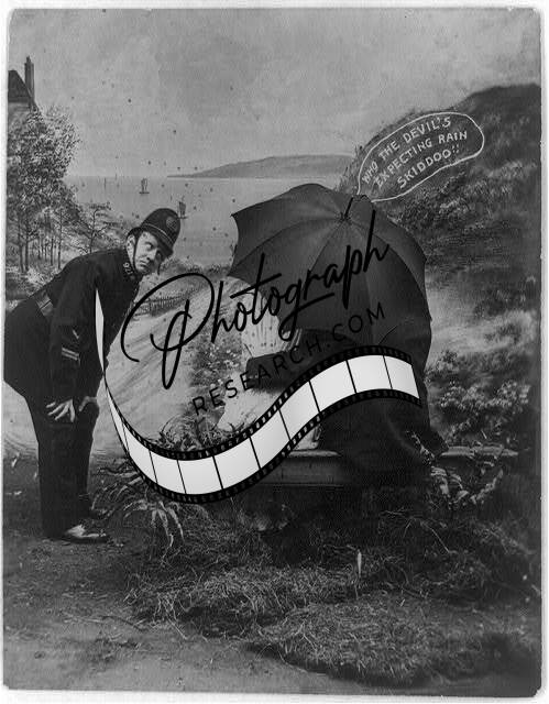 You'll excuse me,courtship,couples,umbrellas,policeman,man,woman,rain,c1907