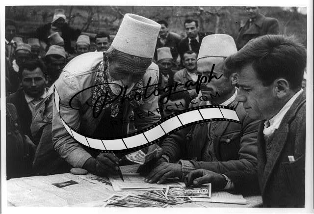 Workers of Fourth Congress of Albanian Trade Unions being paid,1956