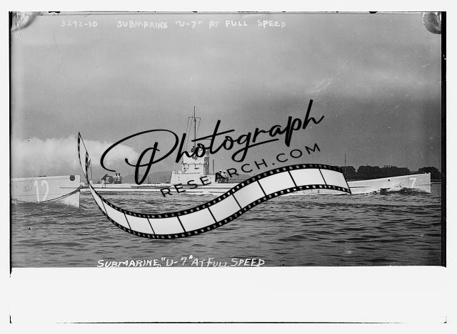 Submarine 'U-7' at full speed,men on top,flag
