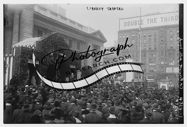 Liberty theater,crowd gathered outside,Doube the Third sign,Bain News Service