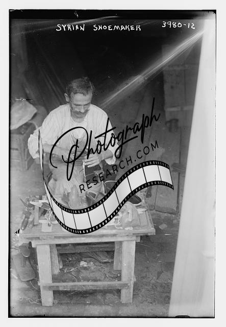 Syrian shoemaker,man working on shoes,Bain News Service,employment