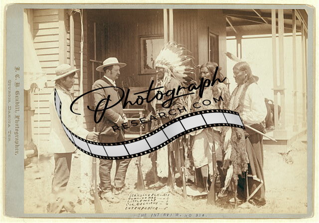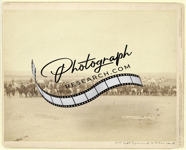 Title: Gen. Miles and staff viewing the largest hostile Indian Camp in the U.S., near Pine Ridge, S. Dak., Jan 16, 1891 / photo and copyright by Grabill, 1891, Deadwood, S.D.