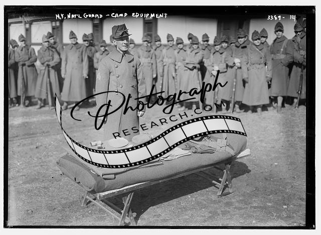 N.Y. National Guard,Camp Equipment,men,cot,dishes,New York,Bain News Service