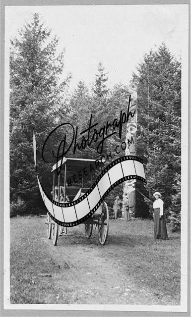 Totem pole,Sitka,Alaska,AK,United States,Carriage,1900-1930,Trees