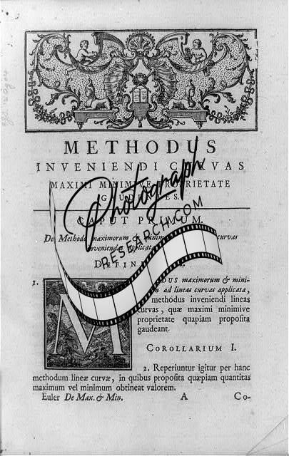 First chapter,Methodus inveniendi,sphinxes,cherub,initial M,stormy sea,math,1744