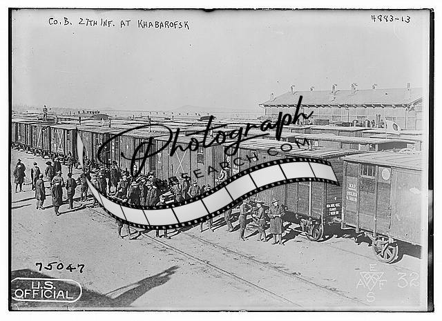 Company B. 27th Infanty,trains,transportation,soldiers,troops,tracks,Khabarofsk