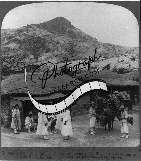 Village Gossip,Suburb of Seoul,Korea,road leading to Pekin Pass,c1904,Oxen,2