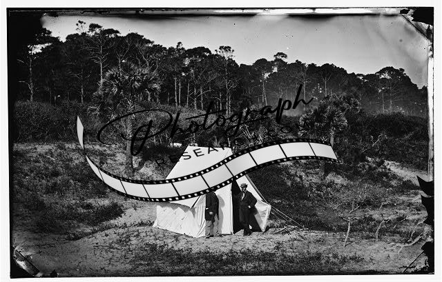 General Quincy A Gillmore,tents,horses,Morris Island,South Carolina,SC,1863