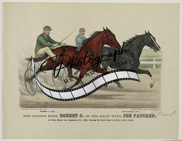 The pacing King Robert J. in his race with Joe Patchen: at Terre Haute, Ind., September 6th, 1894, winning the three heats in 2:03 3/4, 2:02 1/2, 2:04 3/4