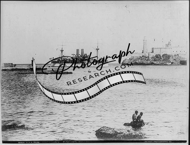 U.S.S. MAINE entering Havana Harbor,view of part of Morro Castle,War of 1898