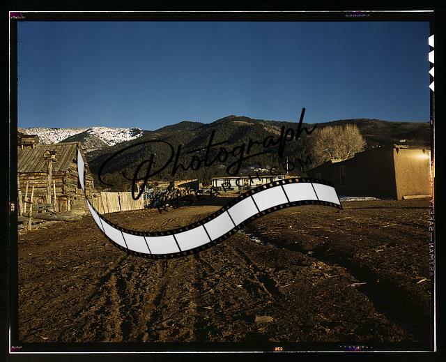 La Alama,mountains,World War,buildings,Questa,NM,New Mexico,John Collier,1943