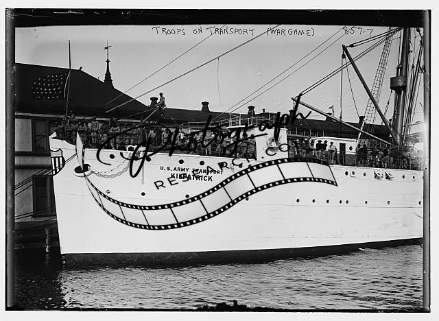 Troops on U.S. Army Transport 'Kilpatrick' during war games,1909,ship