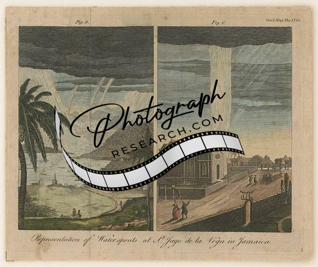 Representation of waterspouts at St. Jago de la Vega in Jamaica
