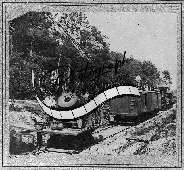 13 inch mortar 'Dictator',railroad cars in front of Petersburg,Virginia,VA,1864