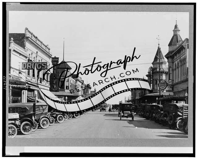 Main Street in Merced,California,CA,Merced County,1900-1920,Automobiles,Stores