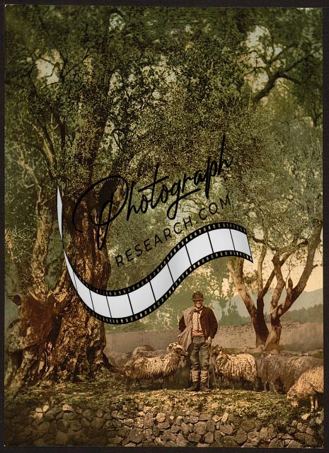 Shephard tending sheep in olive grove, Mentone, Riviera
