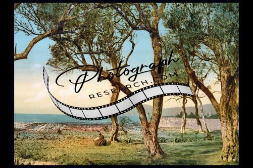 Shephard tending sheep in olive grove, Mentone, Riviera