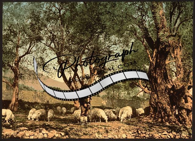 Shephard tending sheep in olive grove, Mentone, Riviera