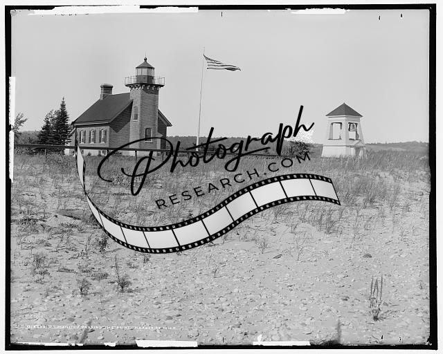 SS Manitou passing,point,steamer,boats,lighthouses,Harbor,Michigan,MI,c1908
