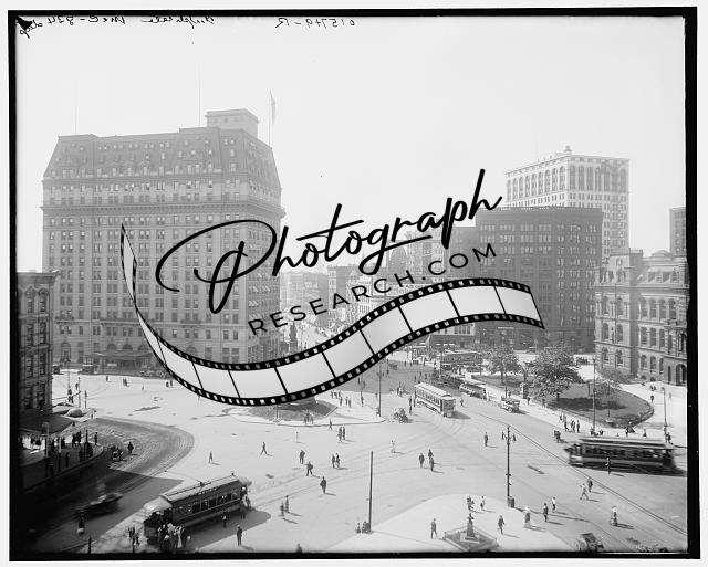 Campus Martius,plazas,hotels,buildings,street cars,statues,Detroit,Michigan,1910