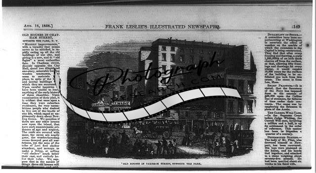 Old Houses,Chatham Street,Park,New York City,NYC,1856,Frank Leslie's Newspaper