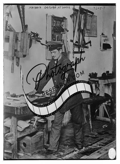 Maimed German at work,prosthetic limb,man working,tools,Bain News Service